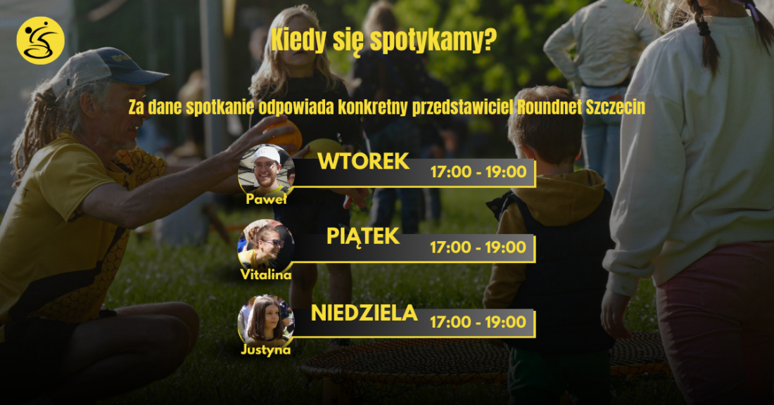 Bezpłatne cykliczne spotkania Roundnet Szczecin odbywają się w godzinach 17:00 - 19:00 w każdy wtorek, piątek i niedzielę na Jasnych Błoniach w Szczecinie.