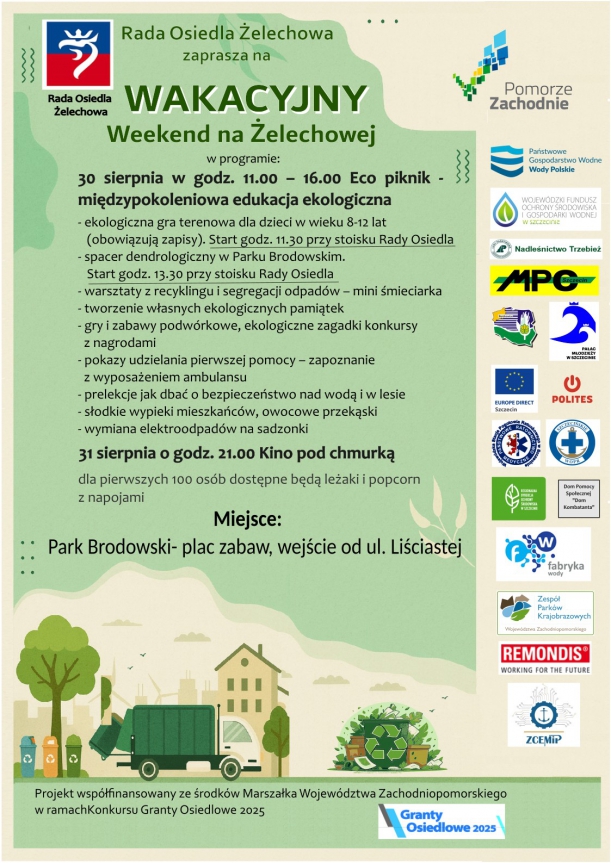 Wydarzenie organizowane jest w ramach konkursu Marszałka Województwa Zachodniopomorskiego „Granty Osiedlowe 2025”, a oczekiwanym rezultatem projektu będzie podniesienie świadomości ekologicznej, integracja międzypokoleniowa mieszkańców Osiedla Żelechowa, a także stworzenie inspirującej przestrzeni do edukacji i dobrej zabawy łączącej lokalną społeczność, instytucje oraz organizacje wokół idei ekologii i troski o środowisko.