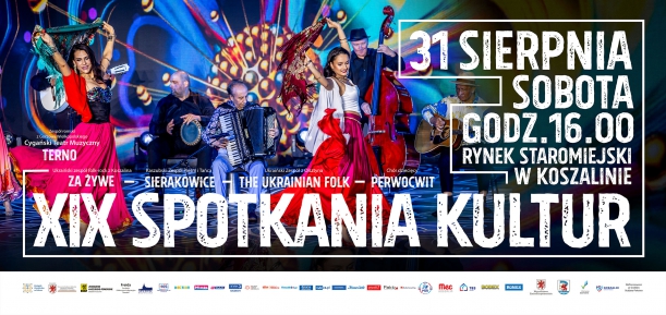 w Koszalinie, Towarzystwem Społeczno-Kulturalnym Mniejszości Niemieckiej "Pomerania" w Koszalinie, Romską Fundacją Edukacyjno-Integracyjną FREIDA. XIX Spotkanie Kultur jest prezentacją dorobku artystycznego mniejszości narodowych i etnicznych zamieszkujących teren Koszalina i Pomorza Środkowego.W tym roku pojawiły się również stoiska m.in. z ukraińskimi i kaszubskimi ludowymi ubiorami oraz stoiska z wyrobami artystycznymi prezentującymi kulturę i rzemiosło zarówno mniejszości narodowych i etnicznych, jak i polskie – tworzone i wystawiane przez mieszkańców Koszalinai Regionu, a także już po raz kolejny zorganizowano specjalną strefa zabaw z atrakcjami dla dzieci i ich rodziców.