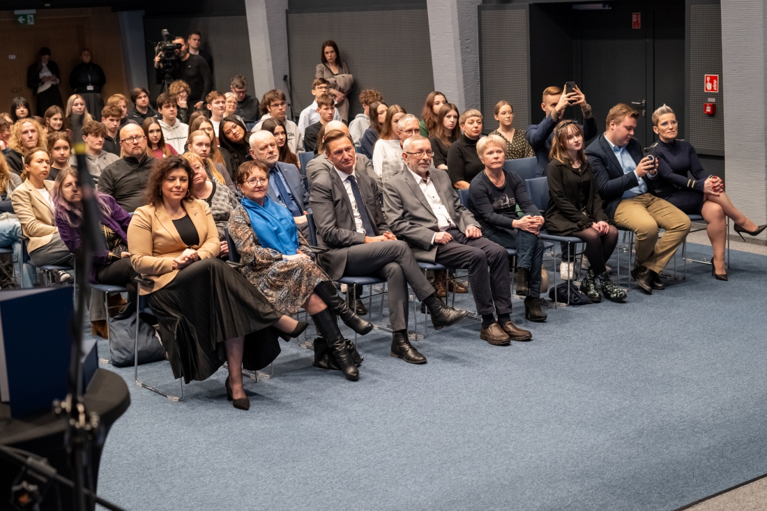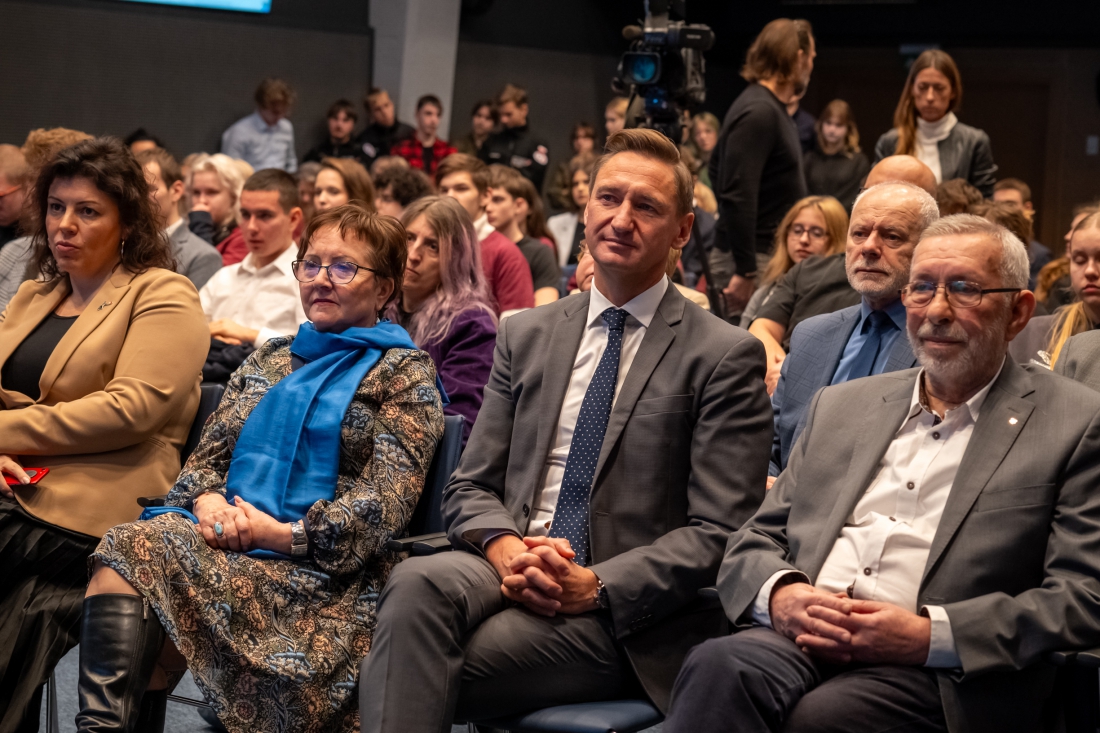 publiczność w sali Kina Delfin, w pierwszym rzędzie marszałek i laureat