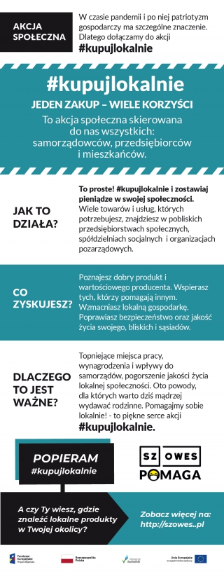 W obliczu obecnej sytuacji gospodarczej wywołanej epidemią, wiedząc że lokalny patriotyzm gospodarczy ma ogromne znaczenie, OWES Szczecin dołącza się do ogólnopolskiej akcji cieszącej się dużym zaufaniem społecznym #kupujlokalnie i zachęca do wsparcia podmiotów ekonomii społecznej (głównie stowarzyszenia, fundacje i spółdzielnie socjalne) w naszym regionie.