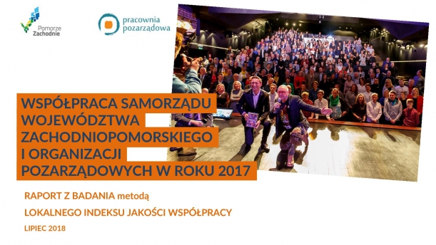 Badanie stanu współpracy Samorządu Województwa Zachodniopomorskiego i organizacji pozarządowych zostało przeprowadzone w województwie po raz pierwszy. Analizowano narzędzia współpracy stosowane w roku 2017. Skorzystano przy tym z narzędzia dedykowanego do prowadzenia tego typu badań – Lokalnego Indeksu Jakości Współpracy (LIJW). Realizatorem całego procesu była Pracownia Pozarządowa w ramach realizacji zadania publicznego.