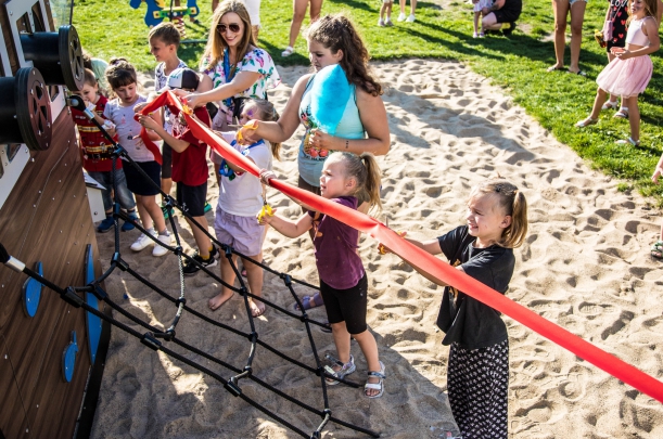 Zaprezentowano nowy element placu zabaw – piękny statek. Najmłodszym malowano twarze, powstawały wymyślne tatuaże. Radość dzieci dopełniła wata cukrowa, popcorn.