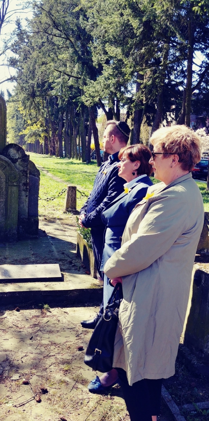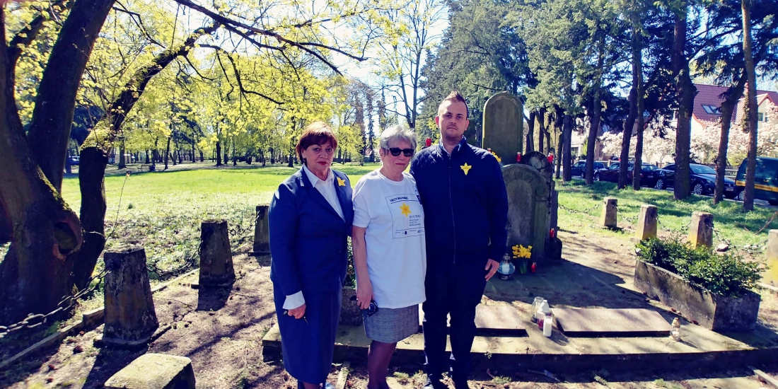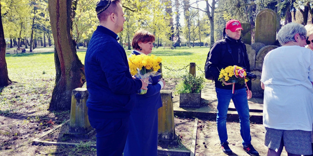 W dniu dzisiejszym o godzinie 11.00 przy lapidarium na terenie b. cmentarza żydowskiego przy ulicy Gorkiego w Szczecinie uczczono pamięć bohaterów powstania getta warszawskiego, które miało miejsce dnia 19.04.1943 r. Spotkanie otworzyła przewodnicząca szczecińskiego oddziału Towarzystwa Społeczno-Kulturalnego Żydów w Polsce – Róża Król, która przypomniała historię getta warszawskiego i jego zagładę. W akcie pamięci i solidarności dyrektorka Wydziału Współpracy Społecznej UMWZ Anna Nowak wraz z pracownikiem Wydziału Dawidem Przybylińskim, złożyli bukiet żonkili, zapalili świecę oraz położyli kamyk na macewie.