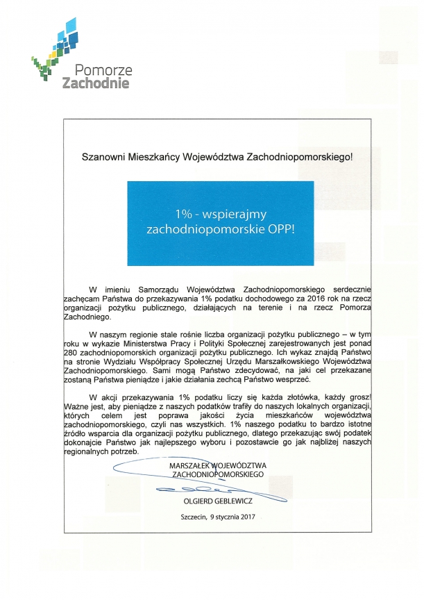 Akcja trwać będzie do końca kwietnia i jak co roku rozesłanych zostanie przez Wydział Współpracy Społecznej Urzędu Marszałkowskiego WZ tysiące e-maili z apelem Marszałka Województwa o przekazywanie 1% na rzecz OPP z terenu naszego województwa.