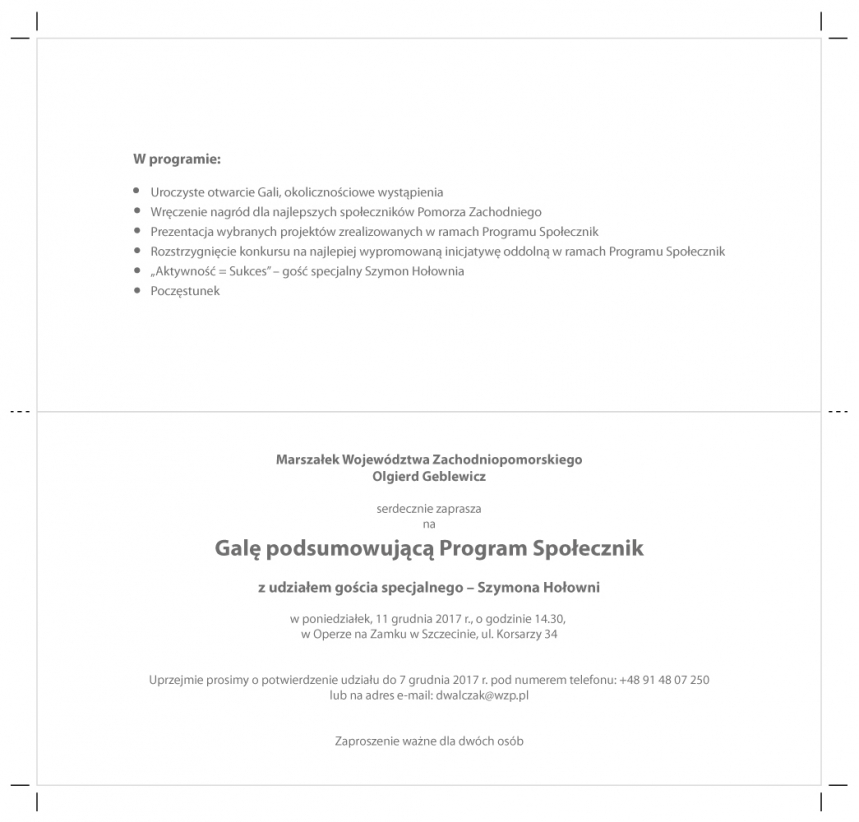 Uprzejmie prosimy o potwierdzenie udziału do 8 grudnia 2017 r. pod numerem telefonu: +48 91 48 07 250 lub na adres e-mail: dwalczak@wzp.pl