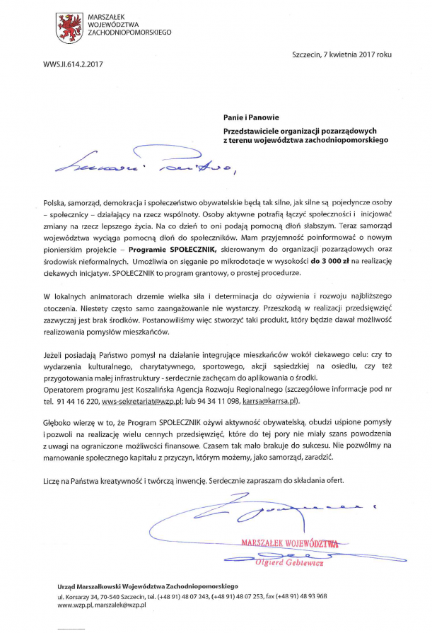 Marszałek zaprasza do udziału w Programie Społecznik
