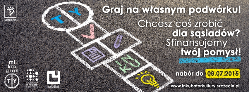 Głównym celem programu pn. „mikrogranTY” jest wsparcie przez Szczeciński Inkubator Kultury działający za pośrednictwem Stowarzyszenia Media Dizajn, inicjatyw społeczno-kulturalnych i społeczno-artystycznych o charakterze non-profit i o charakterze interwencyjnym, realizowanych w przestrzeni publicznej. Pomoc polega na współudziale w realizacji inicjatywy poprzez zakup materiałów lub usług o wartości do 1850 zł brutto, których brak uniemożliwiłby realizację. Inicjatywy powinny być planowane do realizacji w okresie od 20.07.2015 do 14.09.2015.