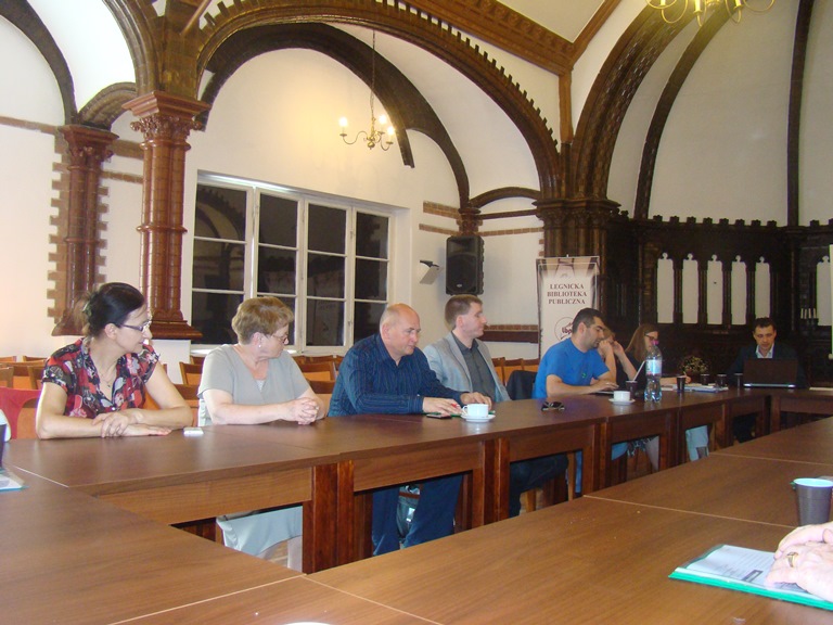 Trzeciego, ostatniego dnia uczestnicy wizyty dotarli do Legnicy, gdzie w przepięknym i posiadającym ciekawą historię budynku Biblioteki Publicznej w Legnicy, uczestnicy mieli okazję wymienić się poglądami z przedstawicielem Powiatowej Rady Działalności Pożytku Publicznego w Wałbrzychu Pawłem Szudzińskim – Sekretarzem Rady oraz pełnomocnikiem Starosty Wałbrzyskiego ds. Współpracy z Organizacjami Pozarządowym,  przedstawicielem Gminnej Rady Działalności Pożytku Publicznego w Wałbrzychu Teresą Ziegler przewodniczącej Rady oraz przedstawicielami Miejskiej Rady Działalności Pożytku Publicznego w Legnicy w osobach Mirosława Jankowskiego przewodniczącego Rady oraz wiceprzewodniczącej Barbary Morawiec, dzięki pomocy której mogliśmy gościć w Bibliotece.