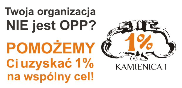 Jeśli Państwa organizacja nie posiada statusu Organizacji Pożytku Publicznego (OPP) i nie ma możliwości samodzielnego uzyskania 1 % podatku, Fundacja Kamienica 1 zaprasza do zapoznania się z możliwością wsparcia Państwa działań.
