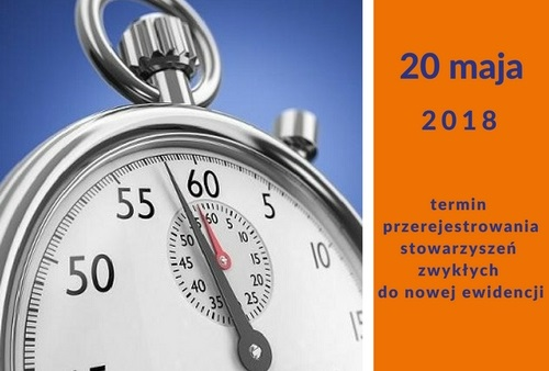 Informacja dla Stowarzyszeń: 20 maja 2018 r. mija ostateczny termin na zmianę wpisu w ewidencji.