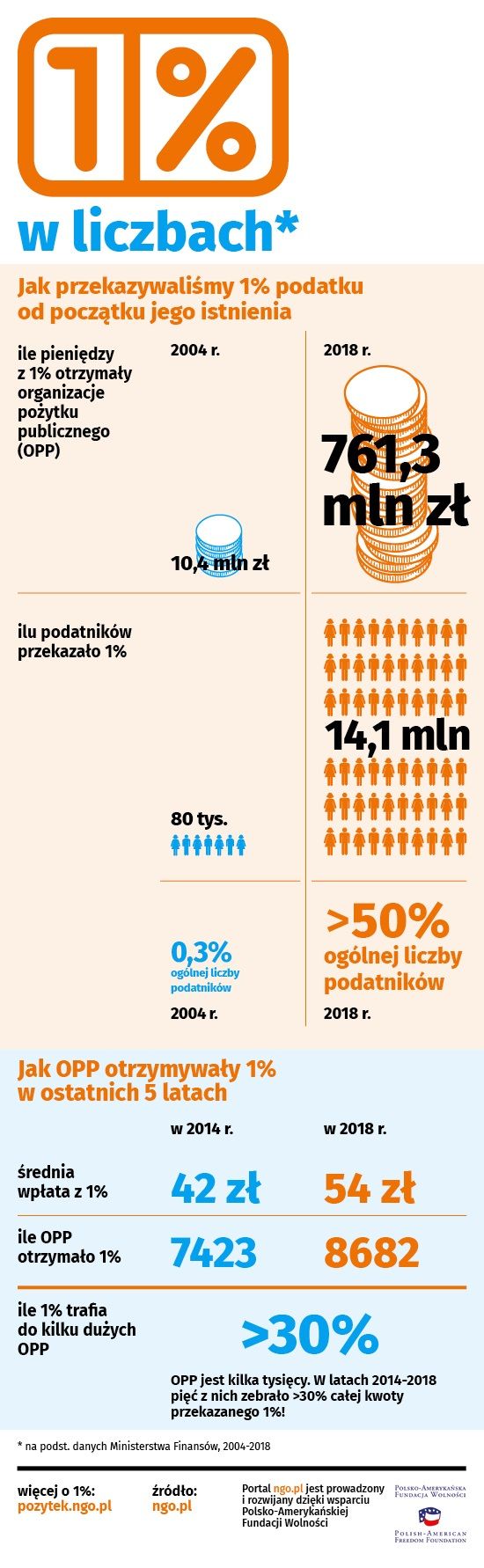 Ministerstwo Finansów ogłosiło dane dotyczące 1% podatku za 2017 rok. Podatnicy na rzecz organizacji pożytku publicznego przekazali rekordową kwotę ponad 760 milionów złotych! Liczba podatników przekazujących 1% także jeszcze nigdy nie była tak wysoka – w tym roku ponad 14 milionów Polek i Polaków skorzystało z tej możliwości.