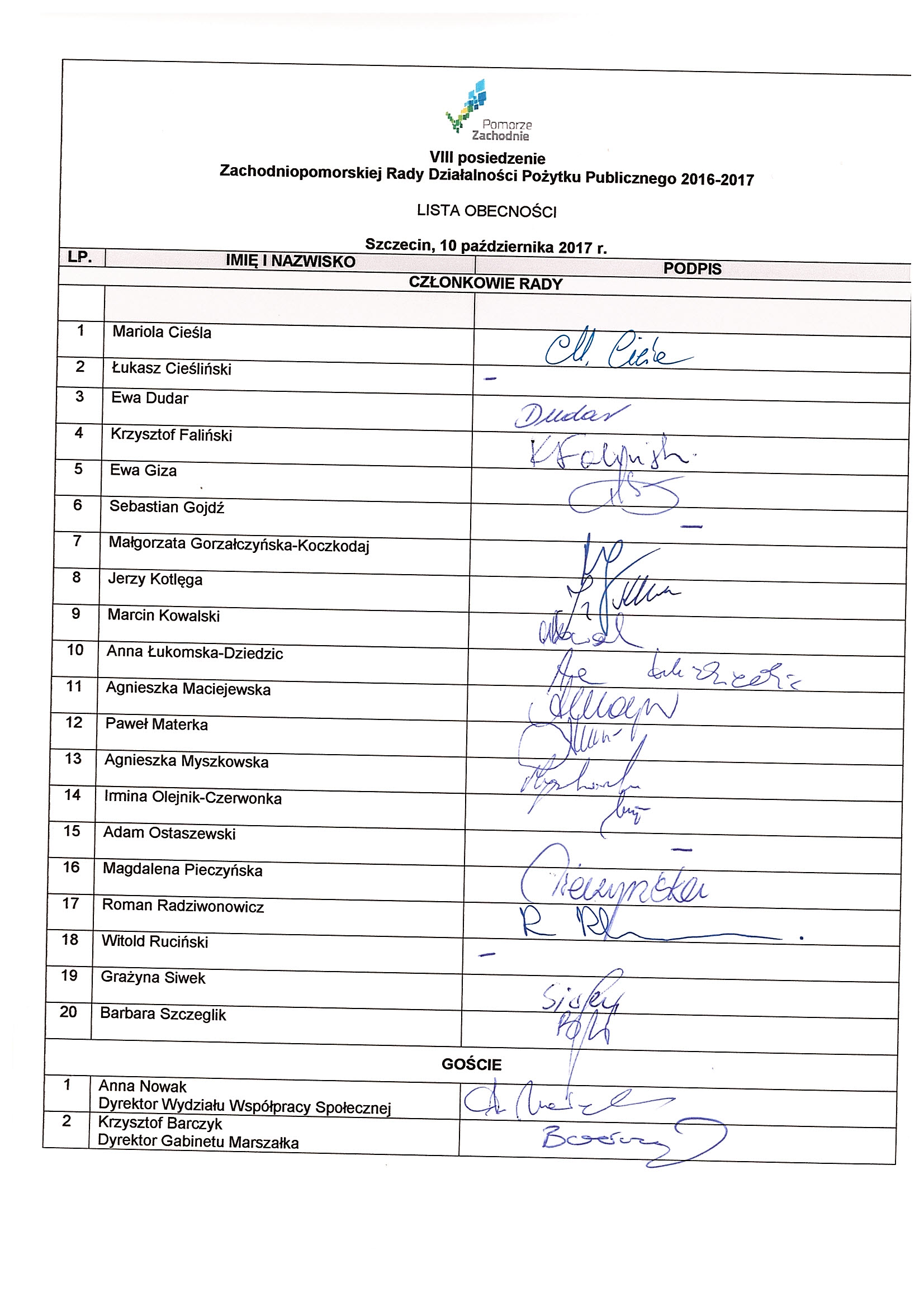 10 października 2017 r. w siedzibie Sejmiku Województwa Zachodniopomorskiego w Szczecinie odbyło się VIII posiedzenie Zachodniopomorskiej Rady Działalności Pożytku Publicznego kadencji 2016-2019. Rada zajęła się pierwszym sporem pomiędzy administracją a organizacją pozarządową.