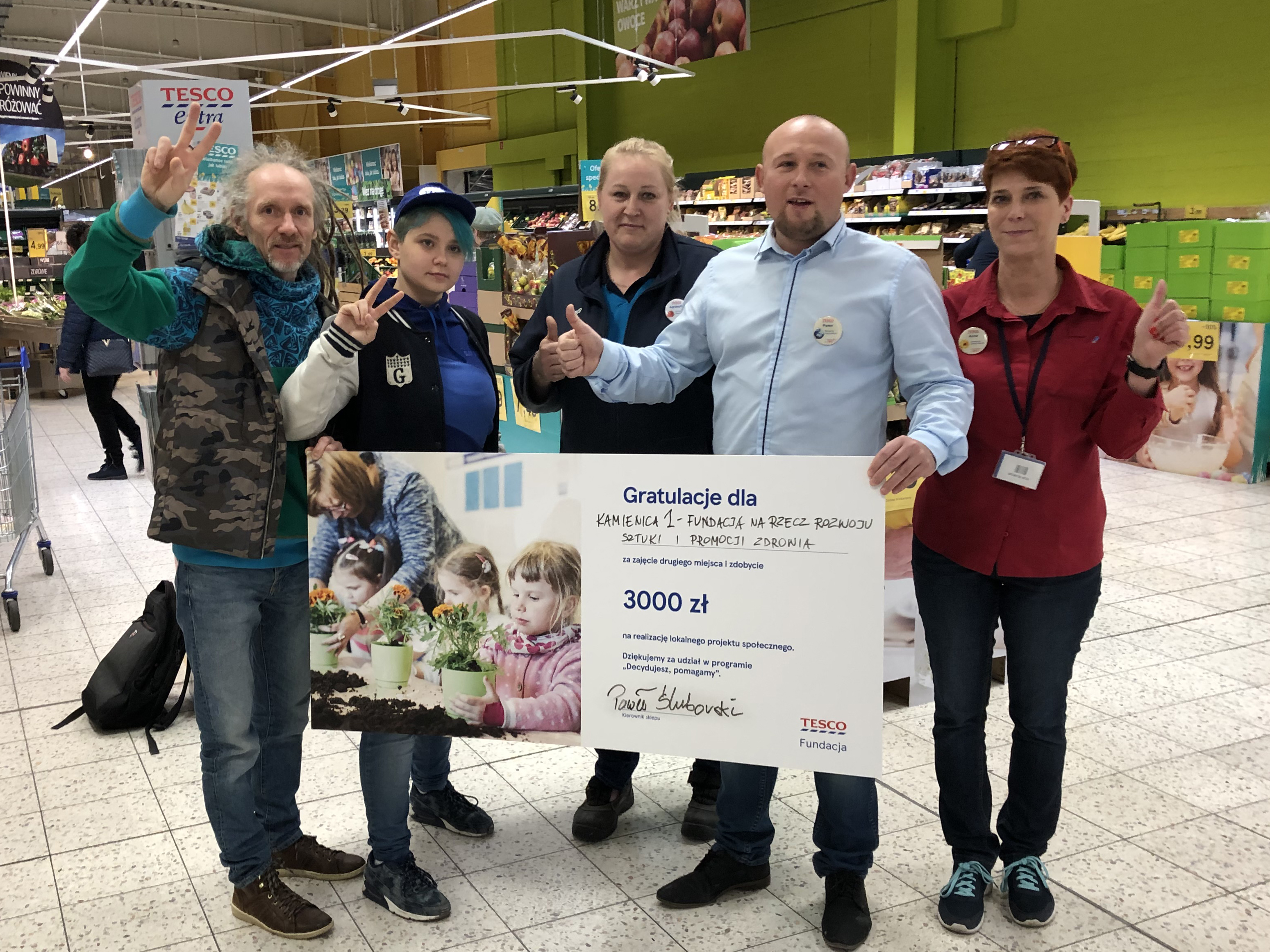 29.03.2019 r. w sklepie Tesco przy ulicy Milczańskiej 31F w Szczecinie odbyło się oficjalne wręczenie grantów zwycięzcom V edycji programu „Decydujesz, pomagamy”. Kamienica1 - Fundacja Na Rzecz Rozwoju Sztuki i Promocji Zdrowia. otrzymała czek na 3000 złotych na realizację projektu Gotowi do lotu - edukacja z mini dronem.