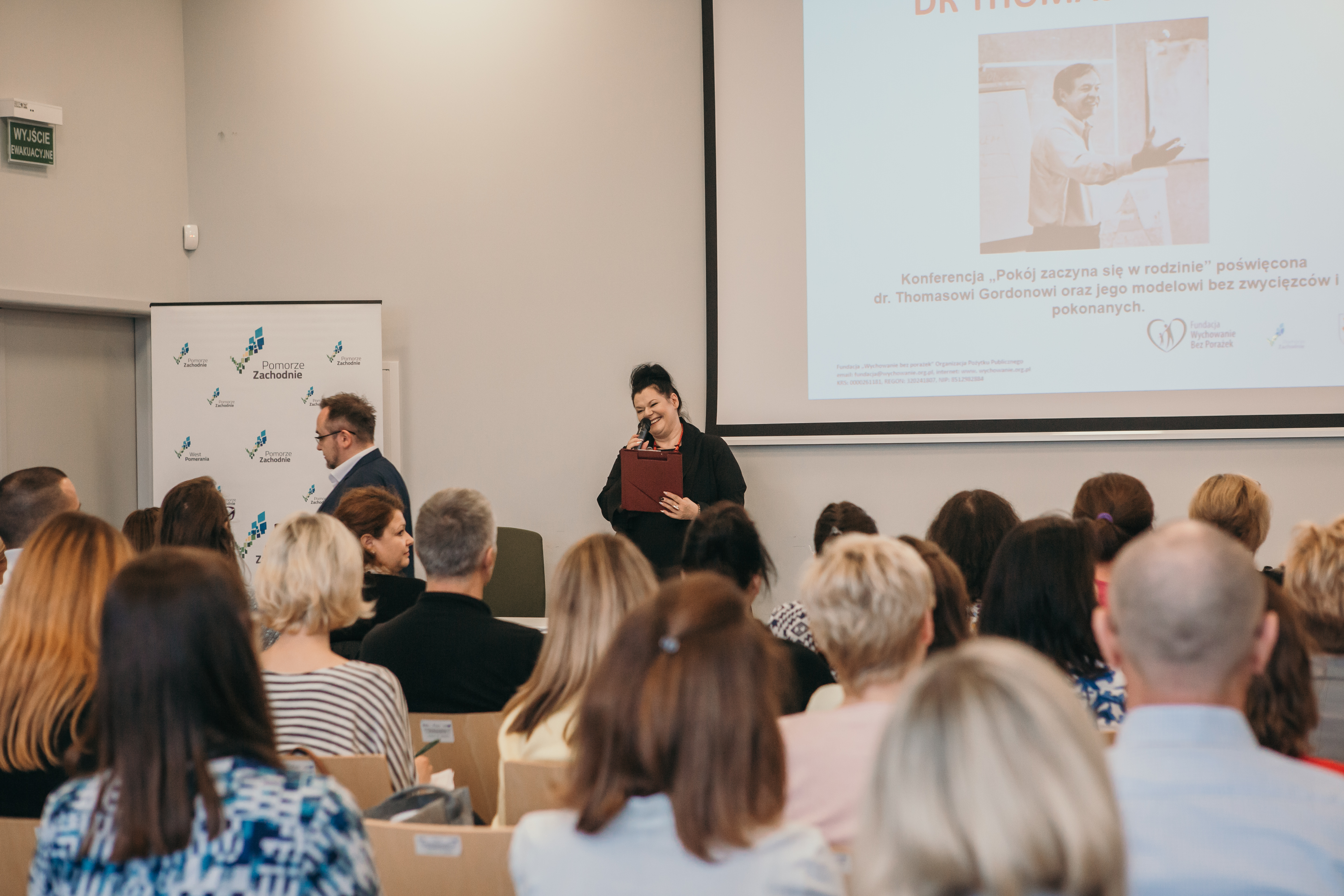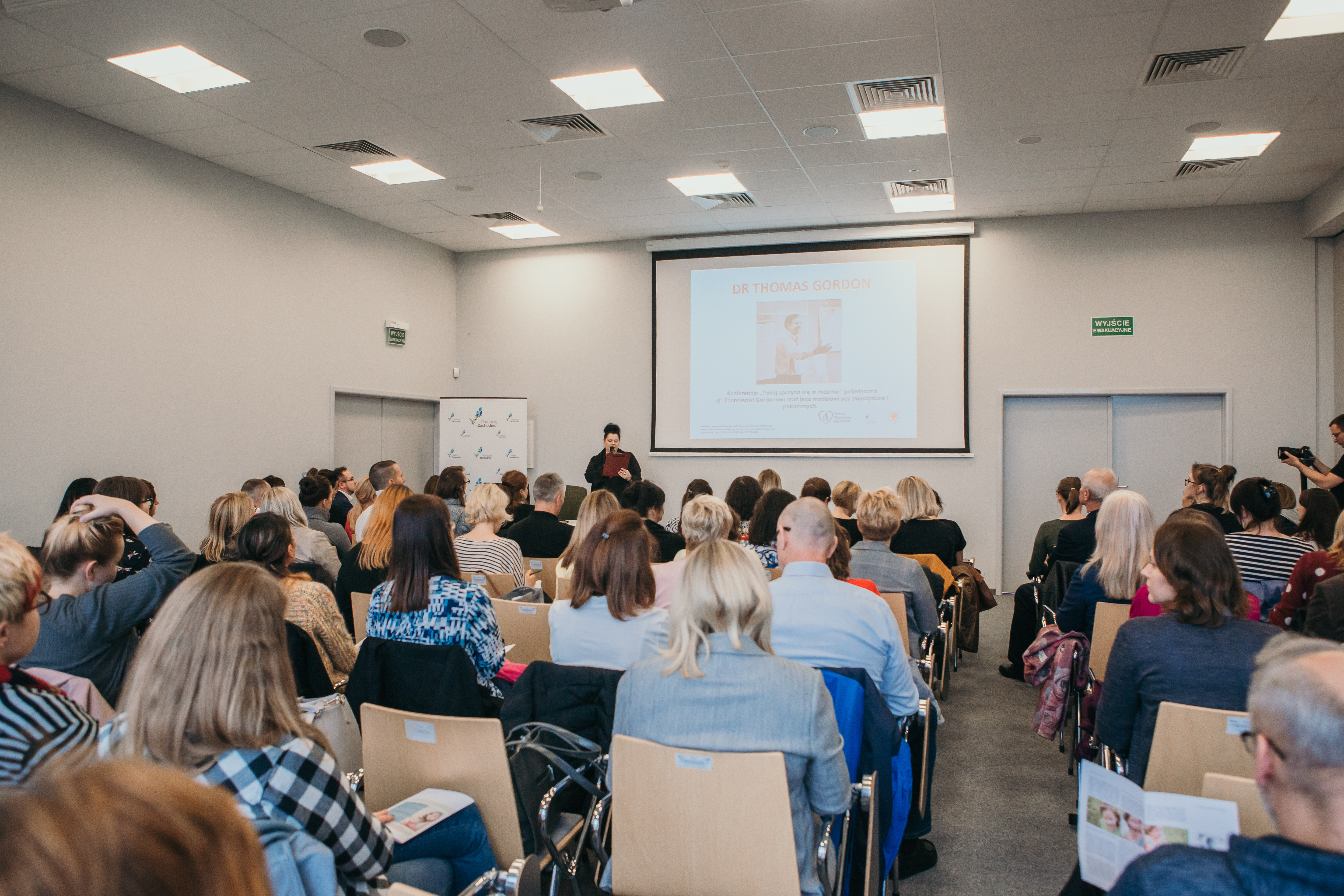 Konferencja, pt. „Pokój zaczyna się w rodzinie” odbyła się 24.10.2019 r. Celem konferencji było pokazanie i upowszechnianie pokojowych praktyk wychowawczych, przedstawienie modelu Gordona jako profilaktyki i edukacji społecznej, rozwijanie umiejętności i postaw wychowawczych opartych o pokojowy model Thomasa Gordona, wpływanie na kształtowanie społecznych postaw dzieci i młodzieży bez użycia przemocowych rozwiązań. Konferencja skłoniła uczestników do głębokiej refleksji, nad miejscem jakim jest rodzina nad sposobem komunikacji w niej, sposobem kształtowania wartości, bezpieczeństwa i rozwiązywania konfliktów, jako przeciwstawienia się przemocy i językowi siły. Spotkanie było podzielone na dwie części. W pierwszej cześci wygłoszono referaty o tematach: „Pokój zaczyna się rodzinie. Co nam grozi jeśli zabraknie determinacji do działania.” - Joanna Ratajczak, „Korzyści stosowania modelu Gordona z małymi dziećmi.” -Katarzyna Antoniak, „Bez zwycięzców i bez pokonanych.” – Violetta Kruczkowska. W drugiej części spotkania, uczestnicy zostali podzieleni na grupy i mogli wziąć udział w wybranych przez siebie warsztatach o tematyce: „Pechowa dwunastka w komunikacji i dlaczego jej unikać, kiedy chcemy pomóc lub postawić granice dziecku.” – Violetta Kruczkowska, „Model Gordona w służbie rodzica i nauczyciela.” – Piotr Kruczkowski, „Jak nastolatki reagują na etykietowanie i czym je zastąpić.” – Piotr Chwalisz, „Dlaczego małe dzieci mówią często nie.” - Katarzyna Antoniak