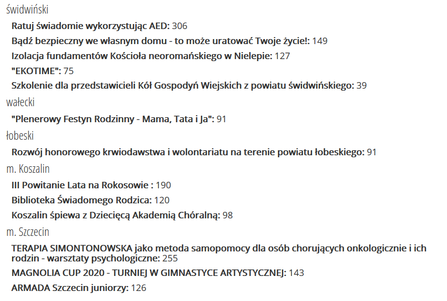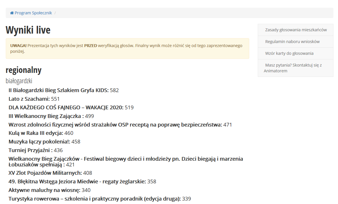 Na 3 dni przed zakończeniem głosowania przedstawiamy Państwu kolejne wyniki częściowe dotyczące głosowania w II filarze Programu Społęcznik. Zwracamy uwagę na fakt, że są to wyniki częściowe, dodatkowo podane głosy nie przeszły etapu weryfikacji, któy odbędzie się dopiero po zakończeniu głosowania. Przypominamy, że głosowanie trwa do 12 grudnia do pólnocy poprzez stronę https://pomorzezachodnie.wybiera.pl/