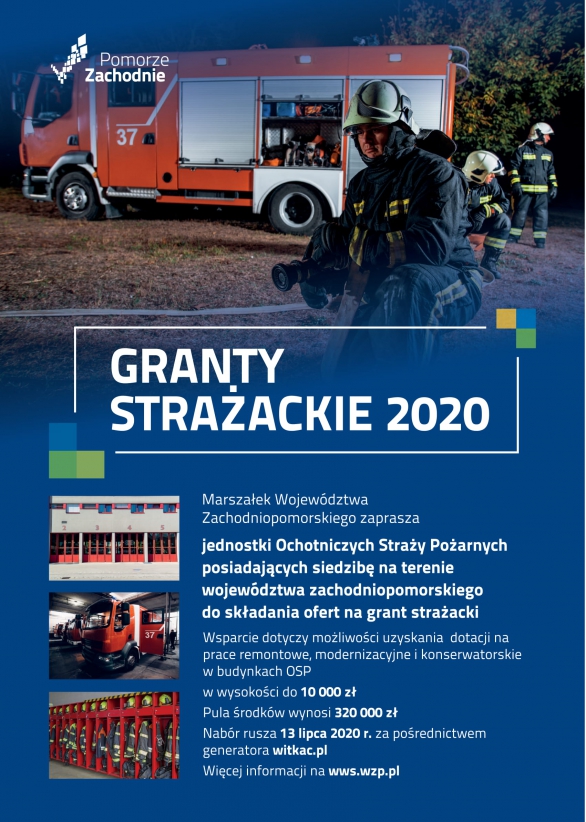 Nabór na Granty Strażackie będzie prowadzony od 13 lipca do 3 sierpnia 2020 r. za pośrednictwem generatora witkac.pl.