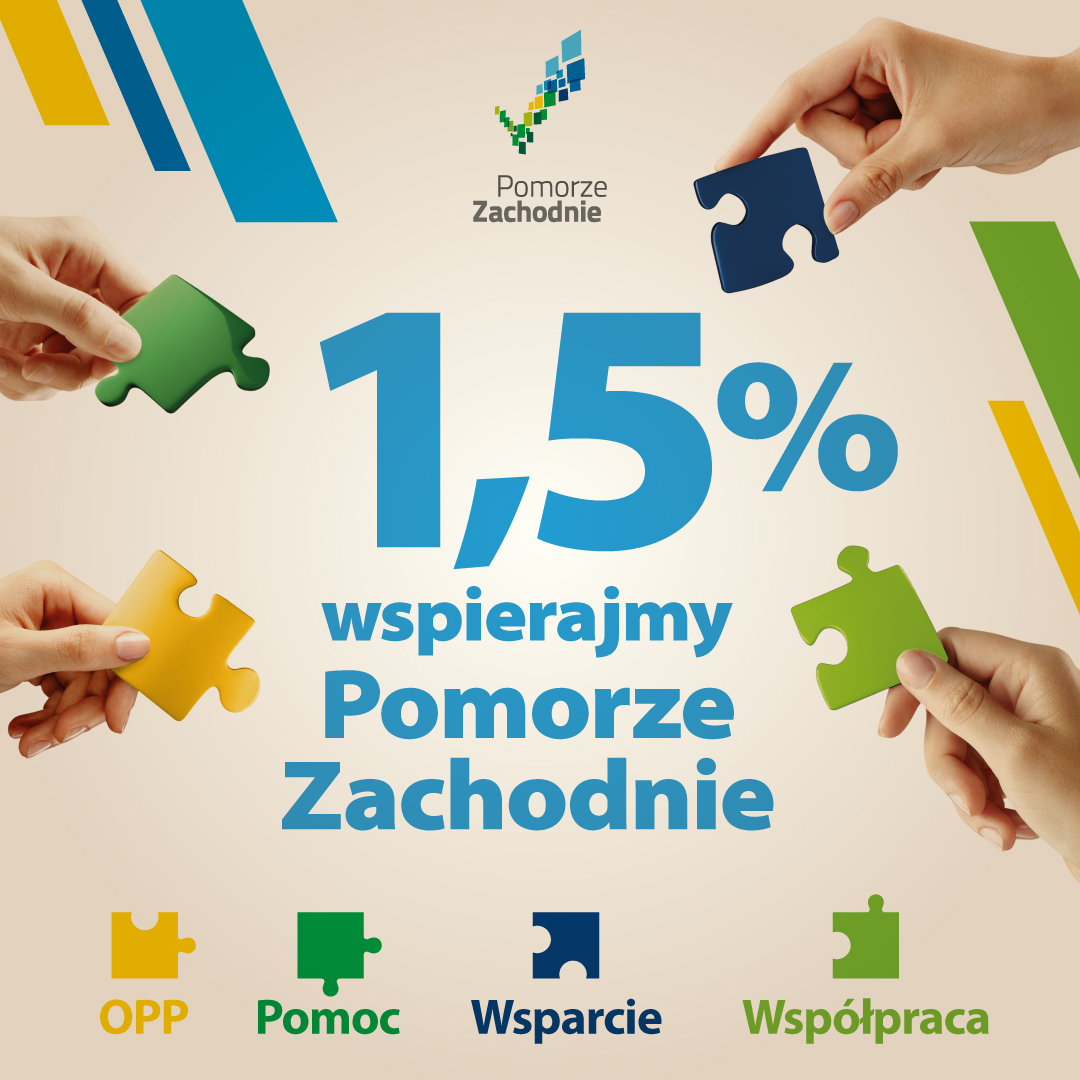 #1,5% dla Pomorza Zachodniego - Zachęcamy do pobierania plakatów - gotowych do wydrukowania (z miejscem na wpisanie nazwy i numeru KRS) oraz materiałów graficznych, które można udostępniać w mediach społecznościowych w ramach kampanii 1,5% podatku - wspierajmy Pomorze Zachodnie.