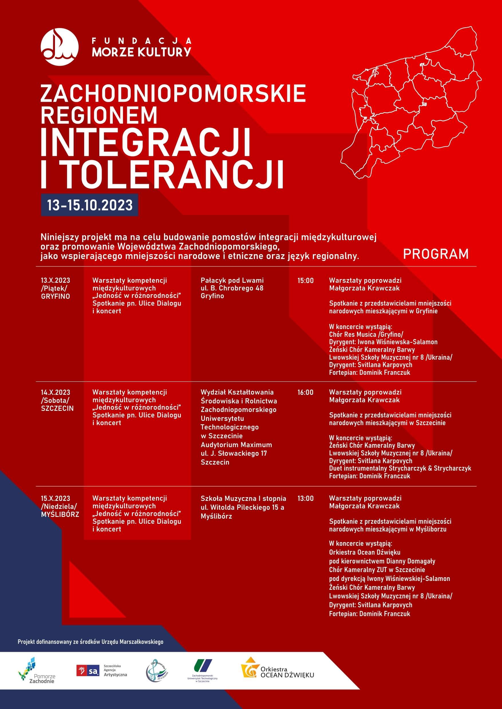 Adanie zatytuowane Zachodniopomorskie Regionem Integracji i Tolerancji dofinansowane zostało z budżetu Województwa Zachowdniopomorskiego.