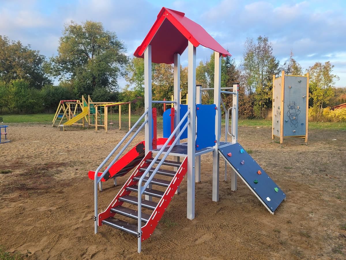 Za środki z grantu w Miszkowicach powstał piękny bezpieczny kolorowy plac zabaw. Dodatkowo przy wyborze miejsca, w uprzątnięciu terenu sprawnie uczestniczyli mieszkańcy.