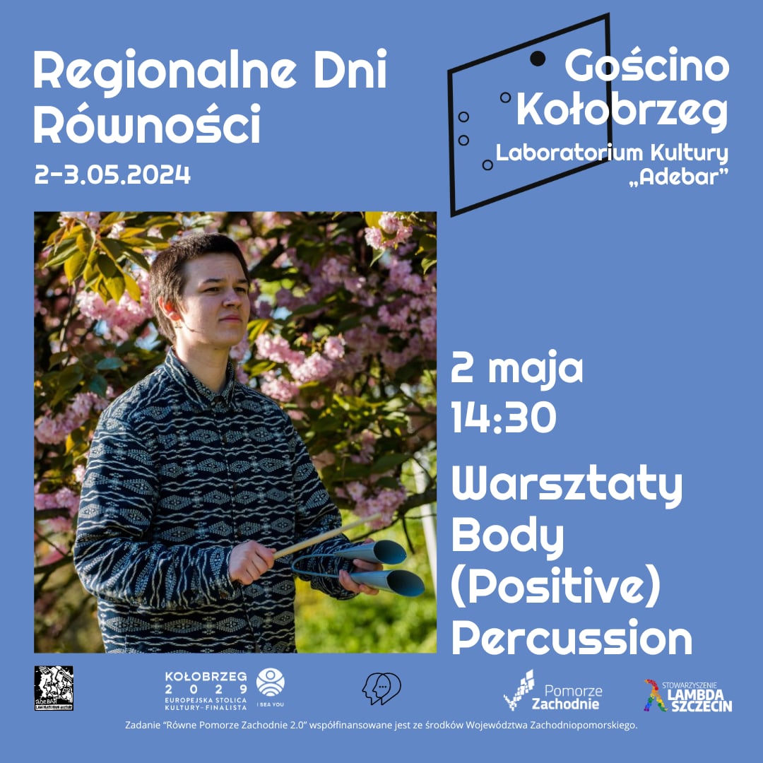 14:30 Warsztaty Body (Positive) Percussion | Labolatorium Kultury Adebar, Plac Ratuszowy 1, Kołobrzeg (prowadzenie Emilia Dąbrowska)
