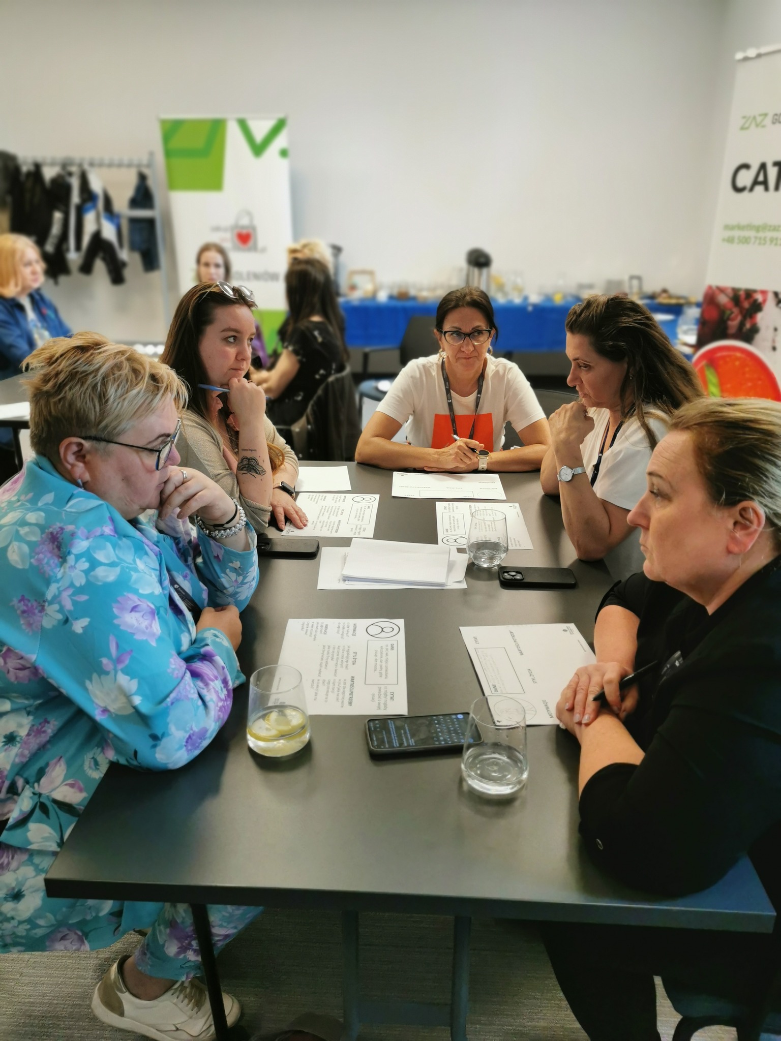 Marta Prucnal i Olga Oskierko – z fundacji Centrum Edukacji Gerontologicznej ( których innowacja „GeroHero znajdż w starości zawód przyszłości” otrzymała dofinansowanie w poprzedniej edycji wraz z Weroniką Chodacz przekazywały doświadczenia uczestnikom spotkania.