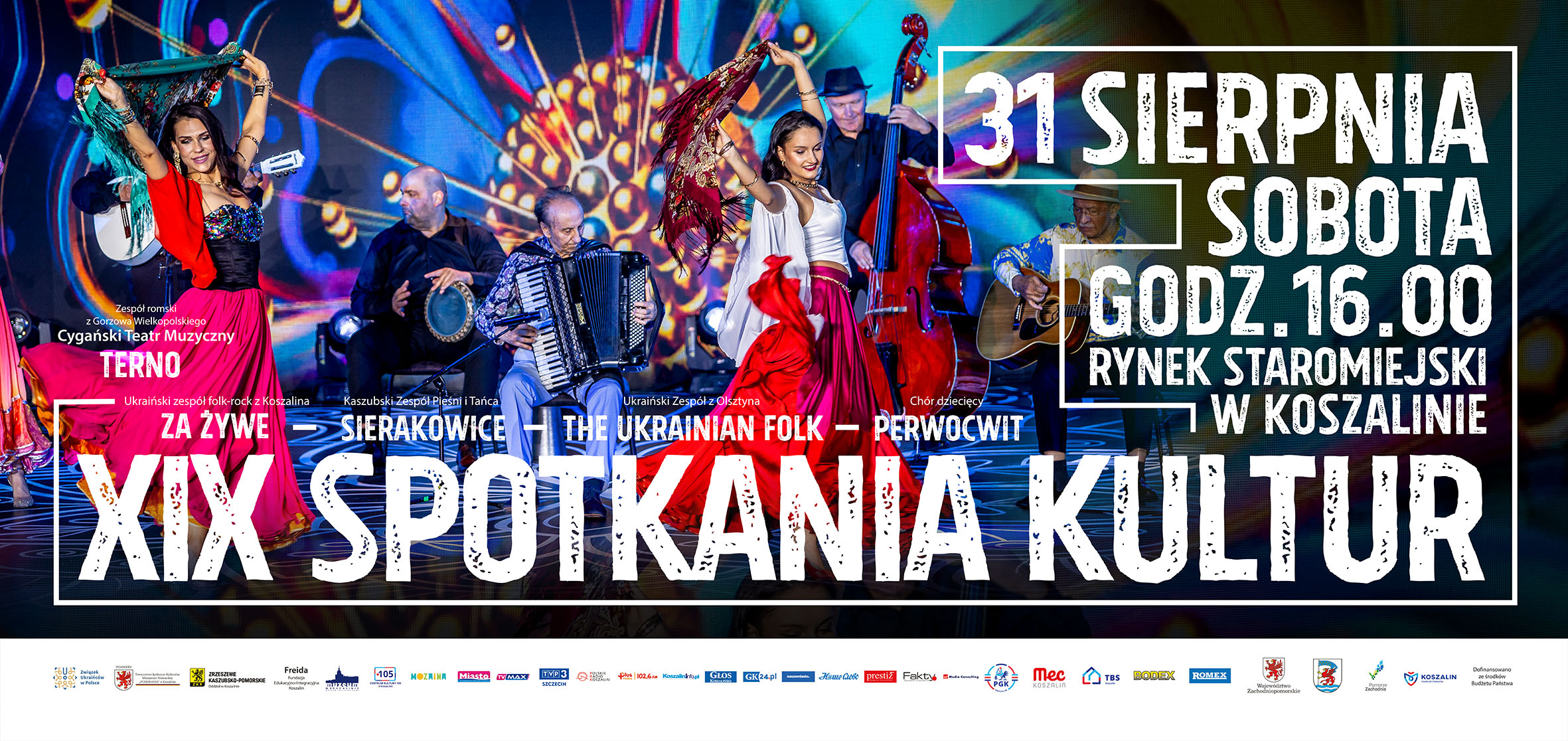 Spotkanie Kultur odbyło się dzięki wsparciu i dotacji z Urzędu Marszałkowskiego Województwa Zachodniopomorskiego, Urzędu Miasta w Koszalinie oraz Ministerstwa Spraw Wewnętrznychi Administracji.