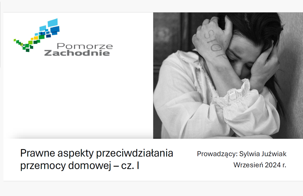 Szkolenie pt. „Prawne aspekty przeciwdziałania przemocy domowej – część I” przeprowadziła Sylwia Juźwiak – prawniczka, absolwentka Wydziału Prawa i Administracji Uniwersytetu Szczecińskiego, konsultantka jednostek sektora finansów publicznych, w tym ośrodków pomocy społecznej.