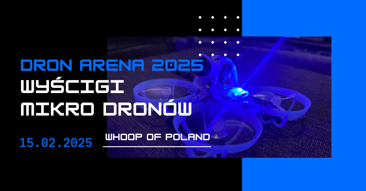 W sobotę 15 lutego 2025r., w sali kinowej INKU przy Alei Wojska Polskiego 90 w Szczecinie odbyły się wyścigi mikro dronów. Rywalizację można było śledzić również online dzięki transmisji na żywo dostępnej w Internecie. To już drugie wydarzenie w 2025 roku w Polsce “Dron Arena 2025 - Whoop of Poland MIX class 2/2025.