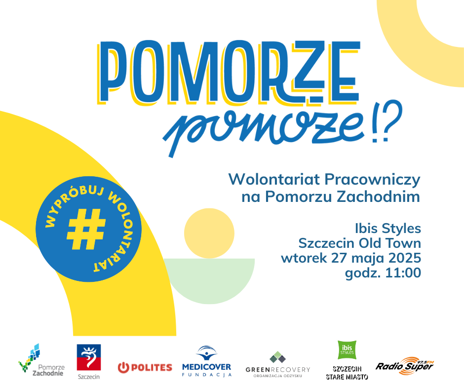 Konferencja odbywa się w ramach działań dofinasowanych przez Urząd Marszałkowski Województwa Zachodniopomorskiego, których celem jest promocja wolontariatu w różnych obszarach życia. Za realizację warsztatów, spotkań i szkoleń w ramach tego projektu odpowiada Stowarzyszenie Polites, które w najbliższy wtorek, 27 maja 2025 r. zaprasza do Hotelu Ibis Styles Szczecin Old Town (ul. Panieńska 10 w Szczecinie) na konferencję „Wolontariat Pracowniczy na Pomorzu Zachodnim”.