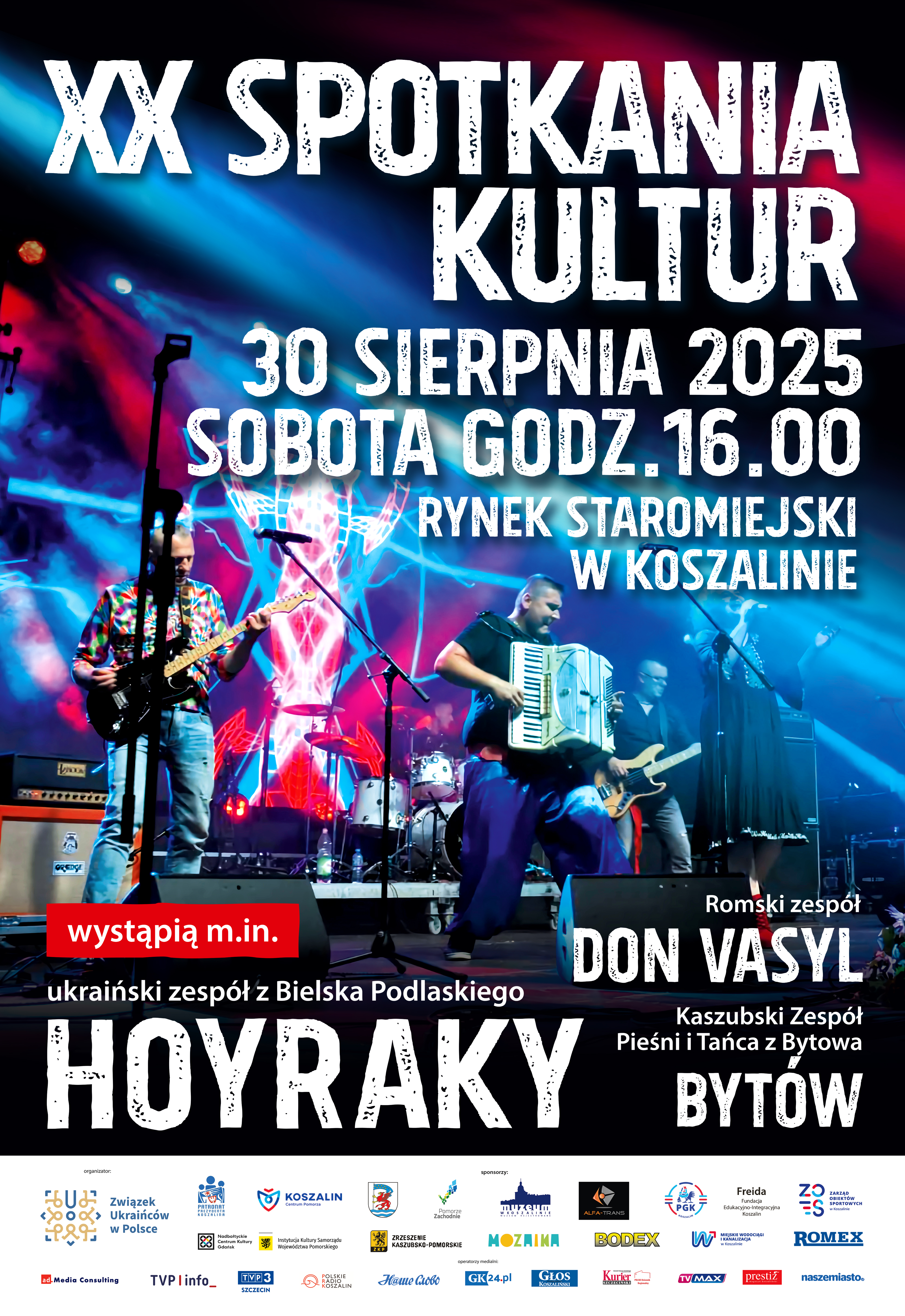 W imieniu organizatorów, serdecznie zapraszamy na Jubileuszowe XX Spotkanie Kultur – Koszalin 2025, które odbędzie się 30 sierpnia br., o godz. 16:00 na Rynku Staromiejskim w Koszalinie. Organizatorem tego wydarzenia jest Zarząd Oddziału i Koła w Koszalinie Związku Ukraińców w Polsce przy współpracy ze Zrzeszeniem Kaszubsko-Pomorskim Oddziałem w Koszalinie, Towarzystwem Społeczno-Kulturalnym Mniejszości Niemieckiej "Pomerania" w Koszalinie, Romską Fundacją Edukacyjno-Integracyjną FREIDA.