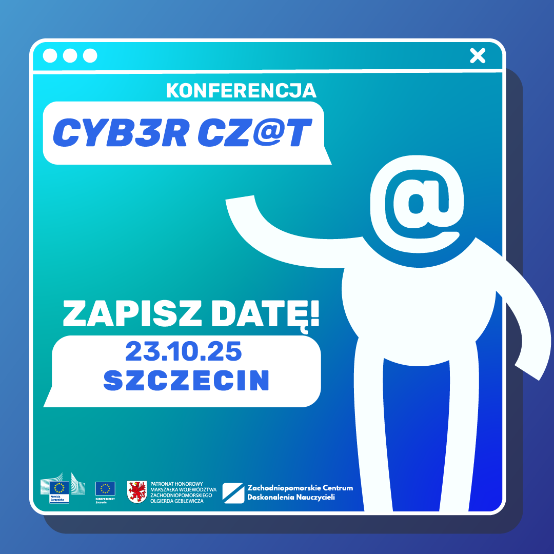 Przedstawicielstwo Regionalne Komisji Europejskiej, Europe Direct Szczecin oraz Zachodniopomorskie Centrum Doskonalenia Nauczycieli (ZCDN) zapraszają nauczycieli i edukatorów z regionu Pomorza Zachodniego do udziału w konferencji „Cyber Czat", która odbędzie się 23 października 2025 w budynku ZCDN-u przy ul. Sowińskiego 68 w Szczecinie.