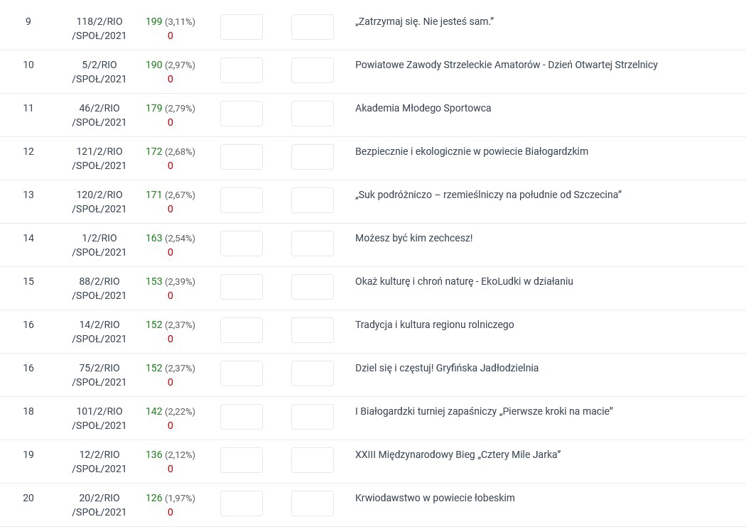 Przedstawiamy 3-cie wyniki częściowe dotyczące głosowania mieszkańców - stan na 18 maja - na projekty o zasięgu powiatowym i regionalnym w II filarze Programu Społecznik na lata 2019-2021. Przypominamy, że głosowanie trwa nadal - do 20 maja br., do północy.
