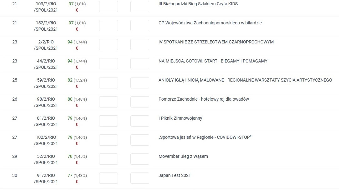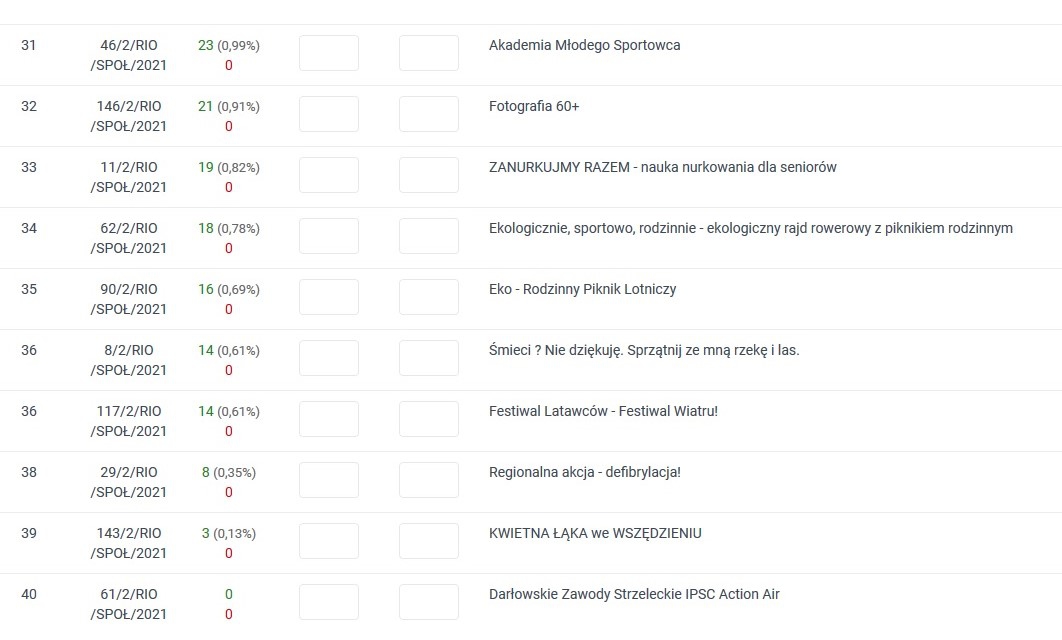 Statystyki częsciowe w trwającym głosowaniu w Programie Społecznik na lata 2019-2021