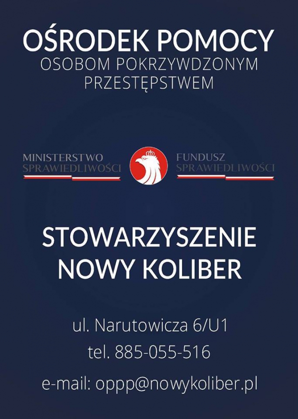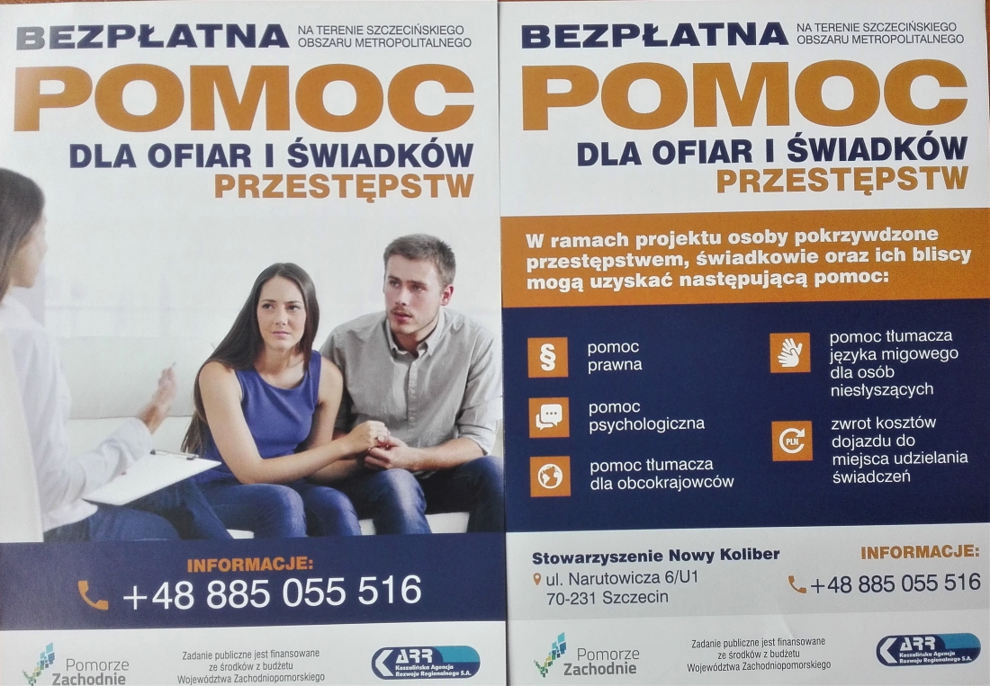 Od marca br. Stowarzyszenie Nowy Koliber realizuje umowę z Ministerstwem Sprawiedliwości w ramach zadania polegającego na udzielaniu wsparcia osobom pokrzywdzonym przestępstwem w Szczecińskim Ośrodku Pomocy Pokrzywdzonym Przestępstwem.