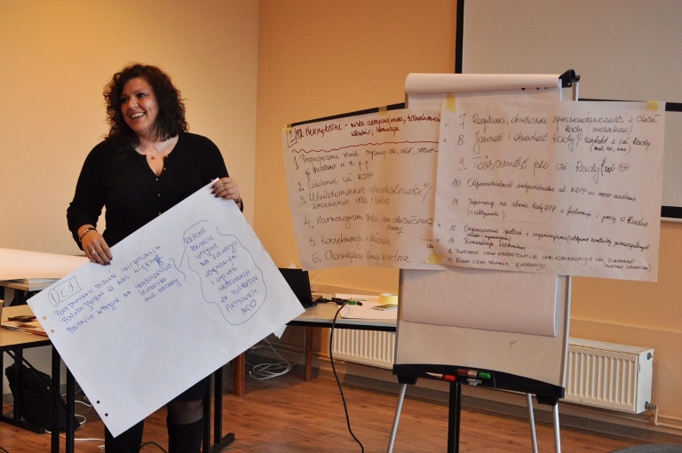 Drugi dzień rozpoczął się 2,5 godzinnym warsztatem umiejętności miękkich przydatnych w działalności w radzie – komunikacji oraz pracy zespołowej. Warsztat prowadził Marcin Kowalski. Po przerwie, Magdalena Pieczyńska przedstawiła uczestnikom zbiór dobrych praktyk działań rdpp na rzecz budowy relacji samorządu i organizacji pozarządowych. Dzięki konkretnym i różnorodnym przykładom z Polski, uczestnicy mogli zainspirować się do rozwoju działań swojej rady.